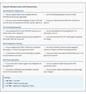 For staffing firms managing contractors across multiple states, these staffing payroll tax tips 2026 cover the updated wage bases, new reporting thresholds, and expanded state-level compliance requirements that affect how payroll is configured this year.